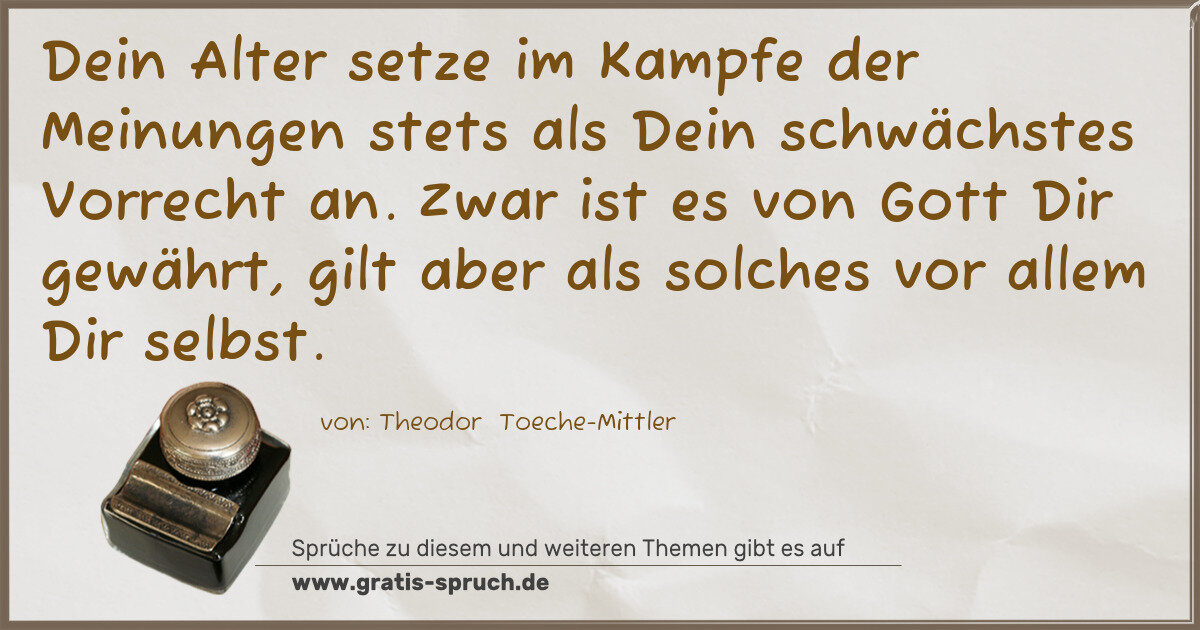 Dein Alter setze im Kampfe der Meinungen stets als Dein schwächstes Vorrecht an. Zwar ist es von Gott Dir gewährt, gilt aber als solches vor allem Dir selbst.
