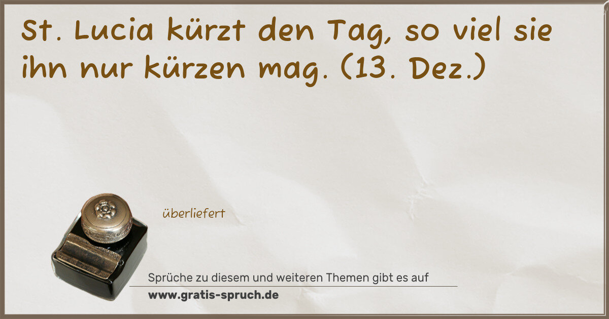 St. Lucia kürzt den Tag, so viel sie ihn nur kürzen mag. (13. Dez.)