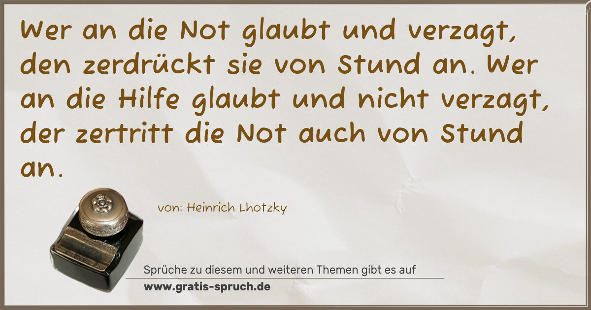 Wer an die Not glaubt und verzagt, den zerdrückt sie von Stund an. Wer an die Hilfe glaubt und nicht verzagt, der zertritt die Not auch von Stund an.