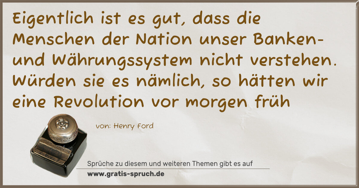 Eigentlich ist es gut, dass die Menschen der Nation unser Banken- und Währungssystem nicht verstehen. Würden sie es nämlich, so hätten wir eine Revolution vor morgen früh