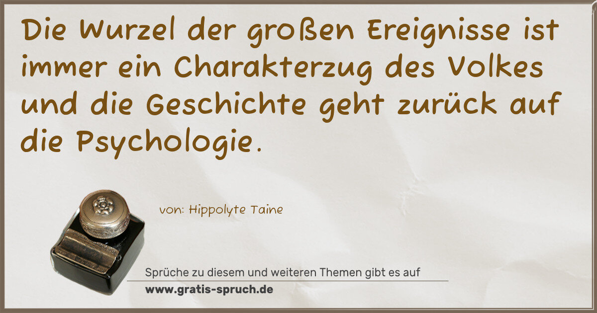 Die Wurzel der großen Ereignisse ist immer ein Charakterzug des Volkes und die Geschichte geht zurück auf die Psychologie.