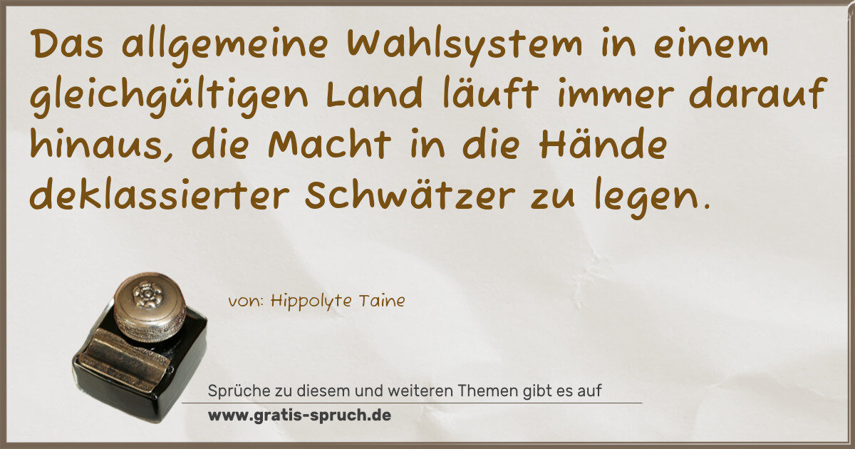 Das allgemeine Wahlsystem in einem gleichgültigen Land läuft immer darauf hinaus, die Macht in die Hände deklassierter Schwätzer zu legen.