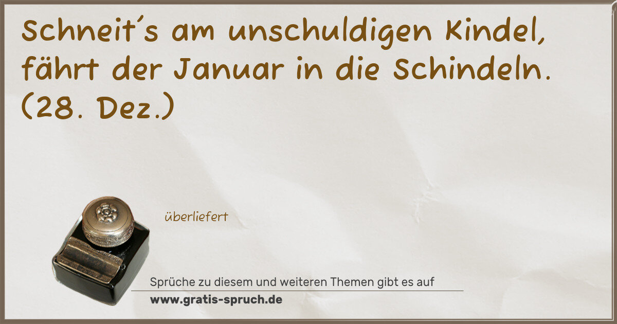Schneit's am unschuldigen Kindel, fährt der Januar in die Schindeln. (28. Dez.)
