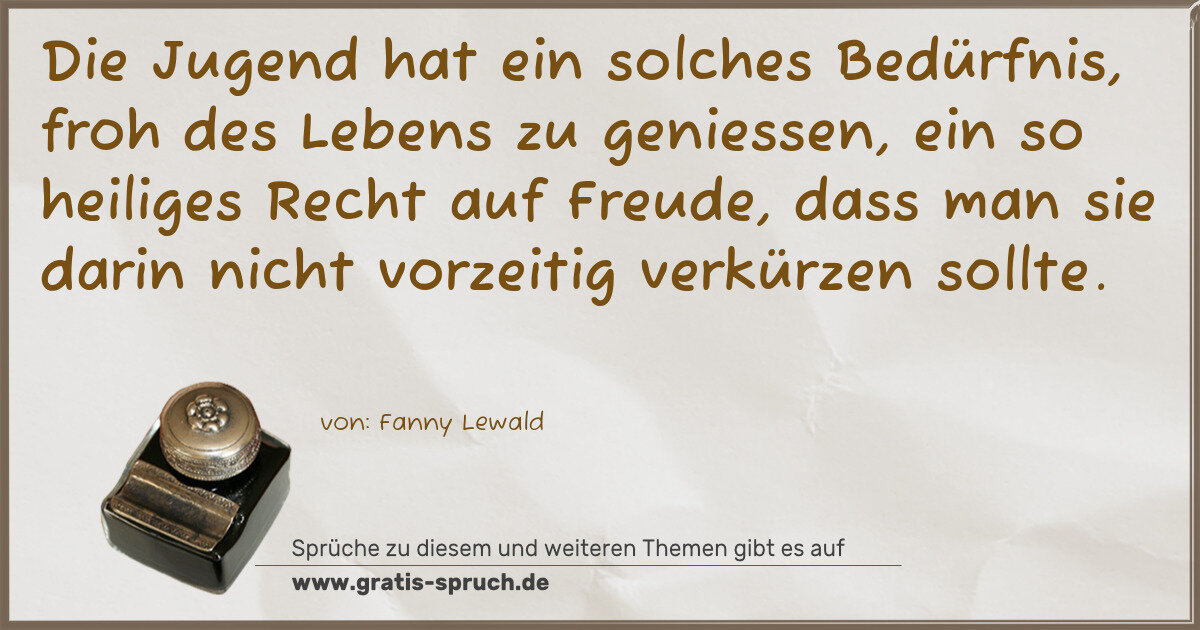 Die Jugend hat ein solches Bedürfnis, froh des Lebens zu geniessen, ein so heiliges Recht auf Freude, dass man sie darin nicht vorzeitig verkürzen sollte.