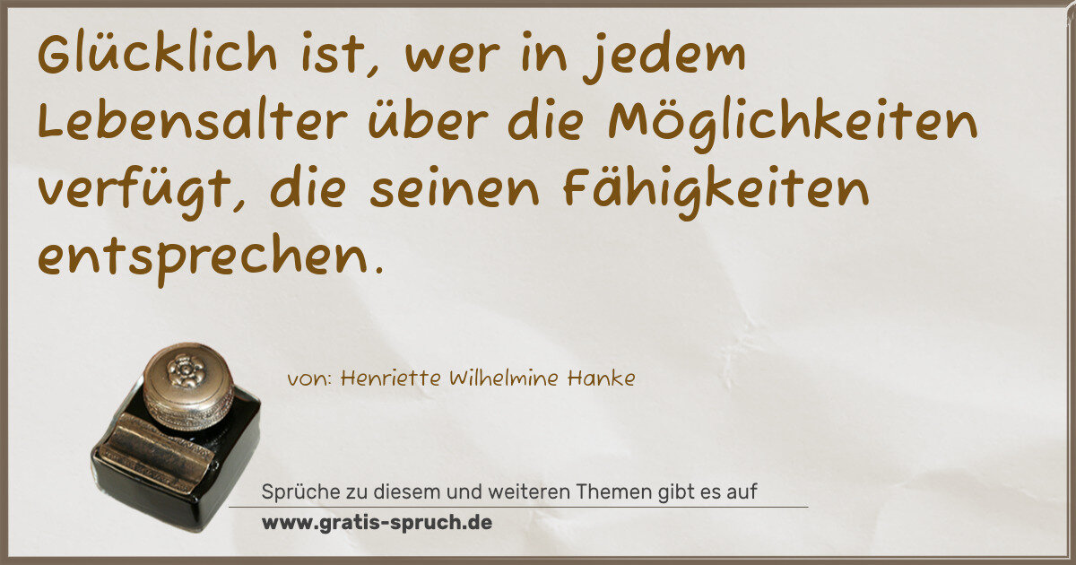 Glücklich ist, wer in jedem Lebensalter über die Möglichkeiten verfügt, die seinen Fähigkeiten entsprechen.