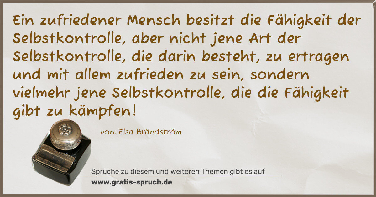 Ein zufriedener Mensch besitzt die Fähigkeit der Selbstkontrolle, aber nicht jene Art der Selbstkontrolle, die darin besteht, zu ertragen und mit allem zufrieden zu sein, sondern vielmehr jene Selbstkontrolle, die die Fähigkeit gibt zu kämpfen!