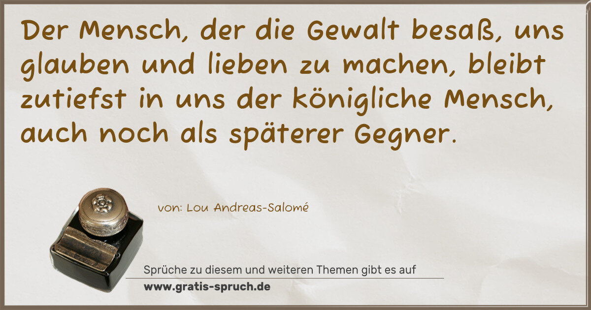 Der Mensch, der die Gewalt besaß, uns glauben und lieben zu machen, bleibt zutiefst in uns der königliche Mensch, auch noch als späterer Gegner.
