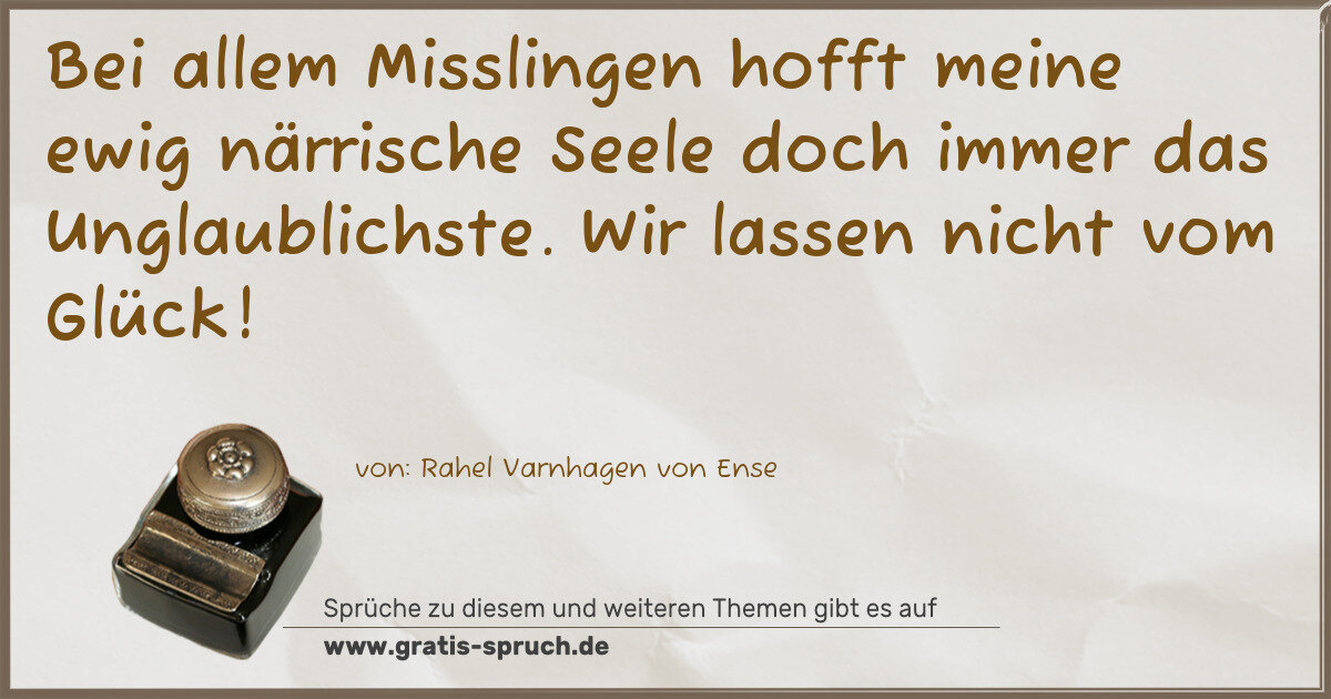 Bei allem Misslingen hofft meine ewig närrische Seele doch immer das Unglaublichste. Wir lassen nicht vom Glück!