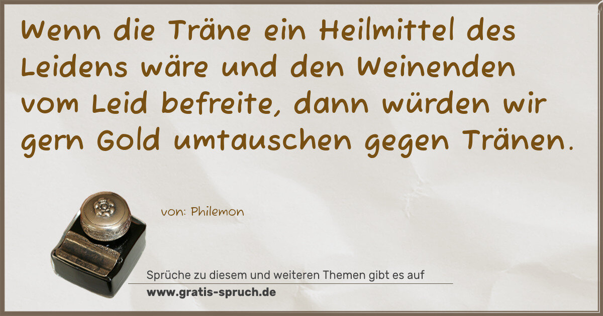 Wenn die Träne ein Heilmittel des Leidens wäre und den Weinenden vom Leid befreite, dann würden wir gern Gold umtauschen gegen Tränen.