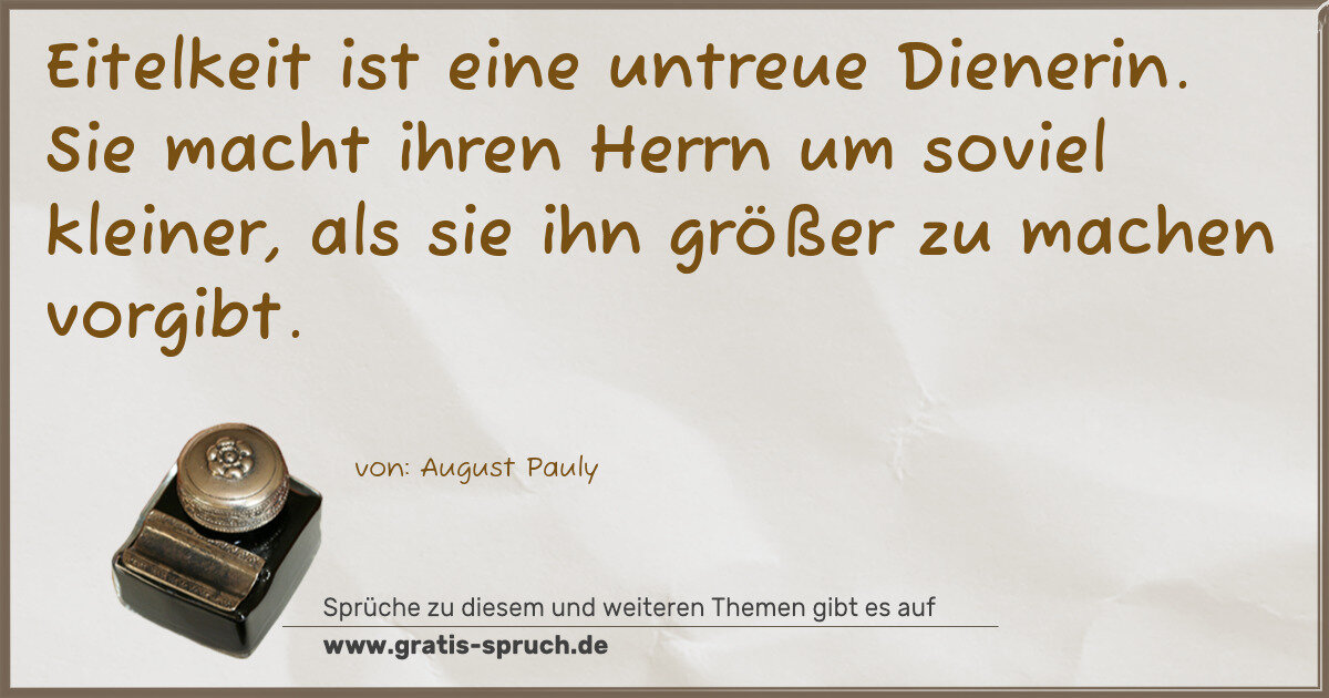 Eitelkeit ist eine untreue Dienerin. Sie macht ihren Herrn um soviel kleiner, als sie ihn größer zu machen vorgibt.