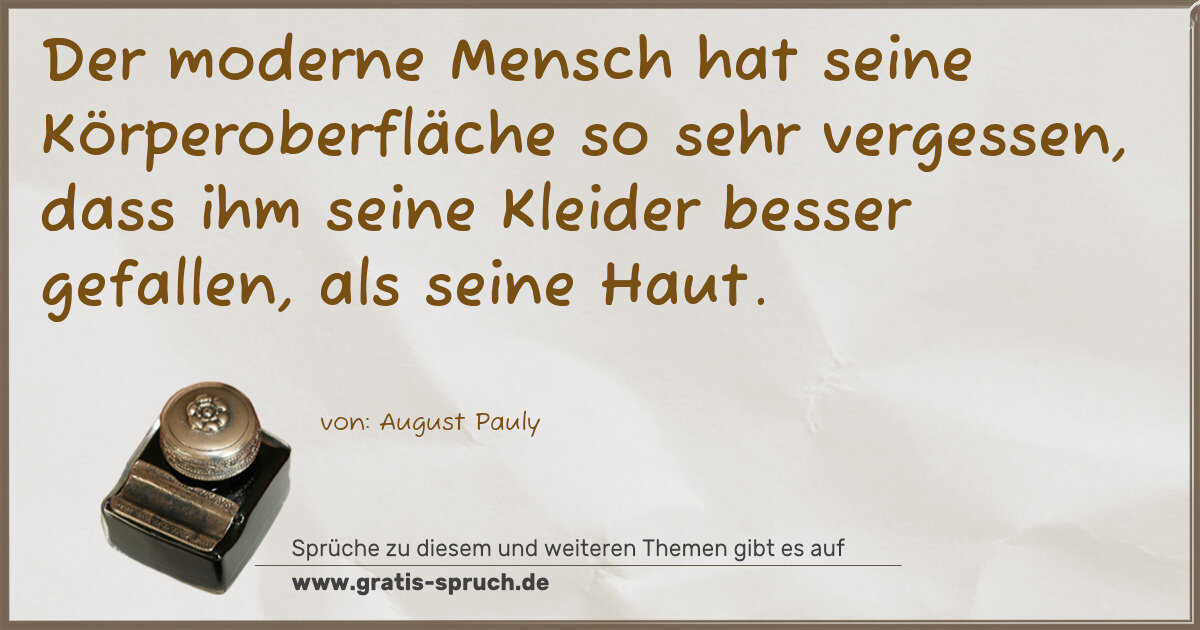 Der moderne Mensch hat seine Körperoberfläche so sehr vergessen, dass ihm seine Kleider besser gefallen, als seine Haut.