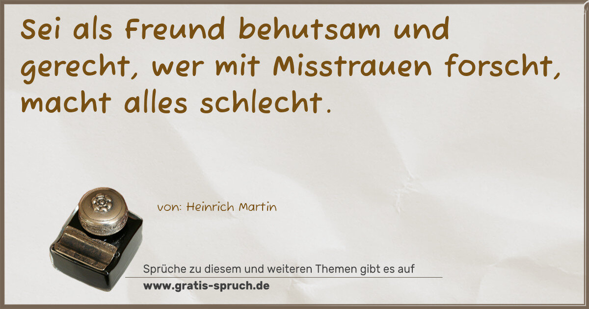 Sei als Freund behutsam und gerecht, wer mit Misstrauen forscht, macht alles schlecht.