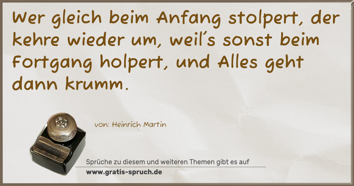 Wer gleich beim Anfang stolpert, der kehre wieder um, weil's sonst beim Fortgang holpert, und Alles geht dann krumm.