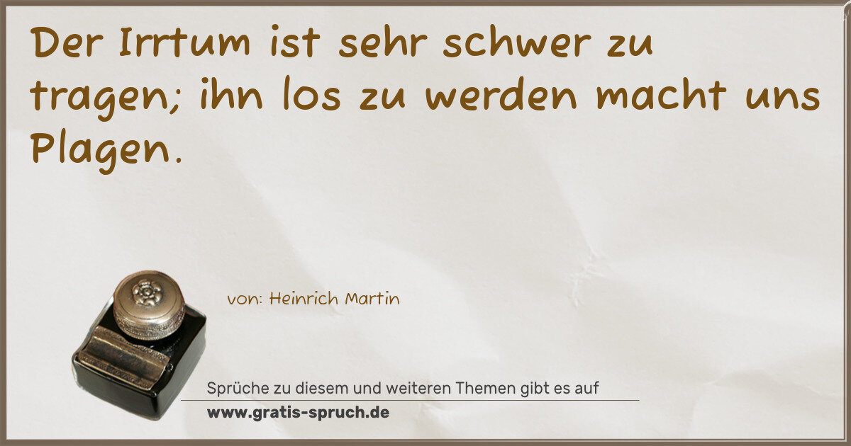 Der Irrtum ist sehr schwer zu tragen; ihn los zu werden macht uns Plagen.