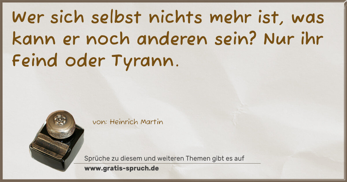 Wer sich selbst nichts mehr ist, was kann er noch anderen sein? Nur ihr Feind oder Tyrann.