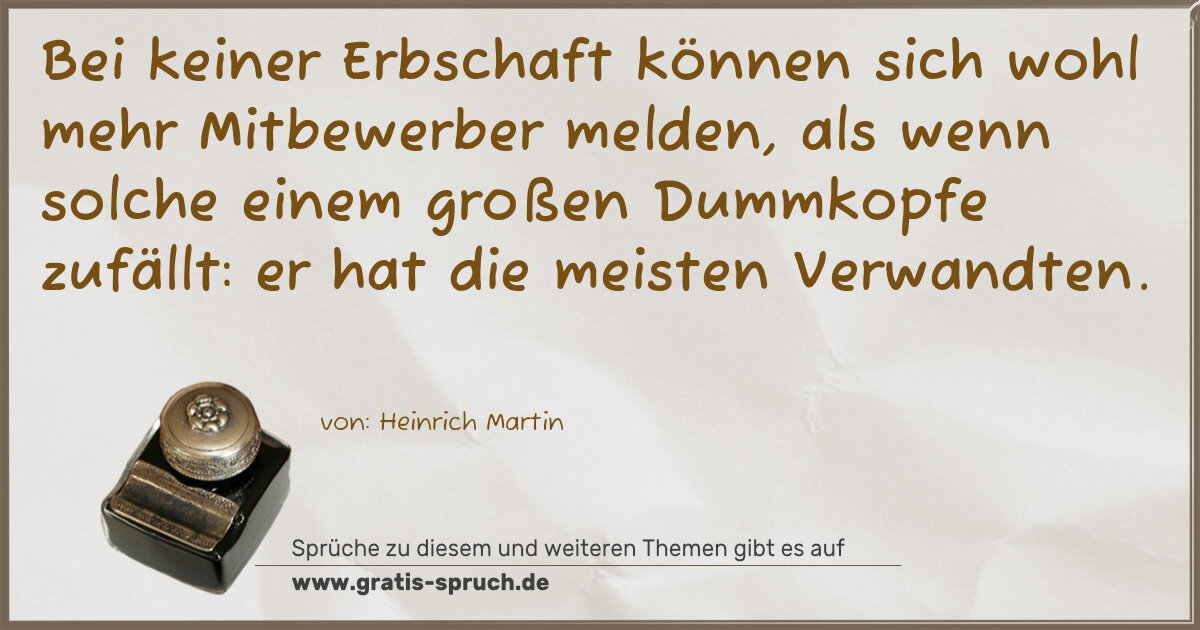 Bei keiner Erbschaft können sich wohl mehr Mitbewerber melden, als wenn solche einem großen Dummkopfe zufällt: er hat die meisten Verwandten.