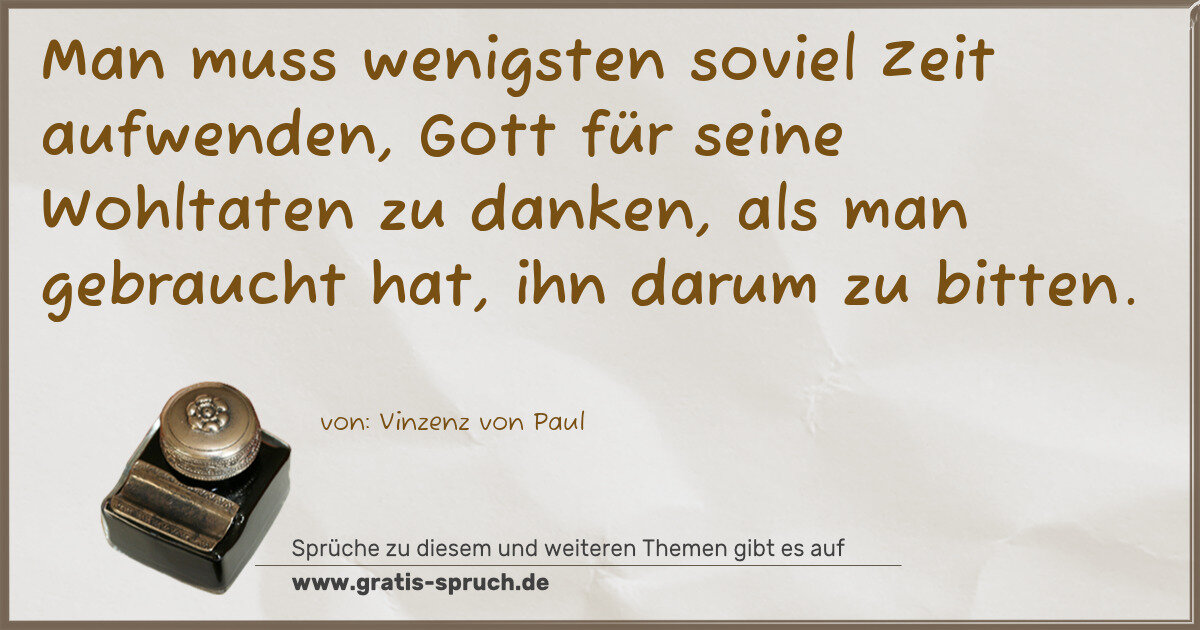 Man muss wenigsten soviel Zeit aufwenden, Gott für seine Wohltaten zu danken, als man gebraucht hat, ihn darum zu bitten.