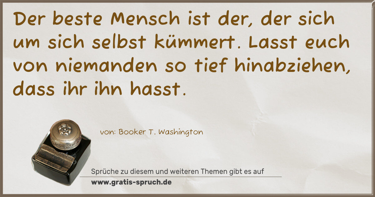 Der beste Mensch ist der, der sich um sich selbst kümmert. Lasst euch von niemanden so tief hinabziehen, dass ihr ihn hasst.