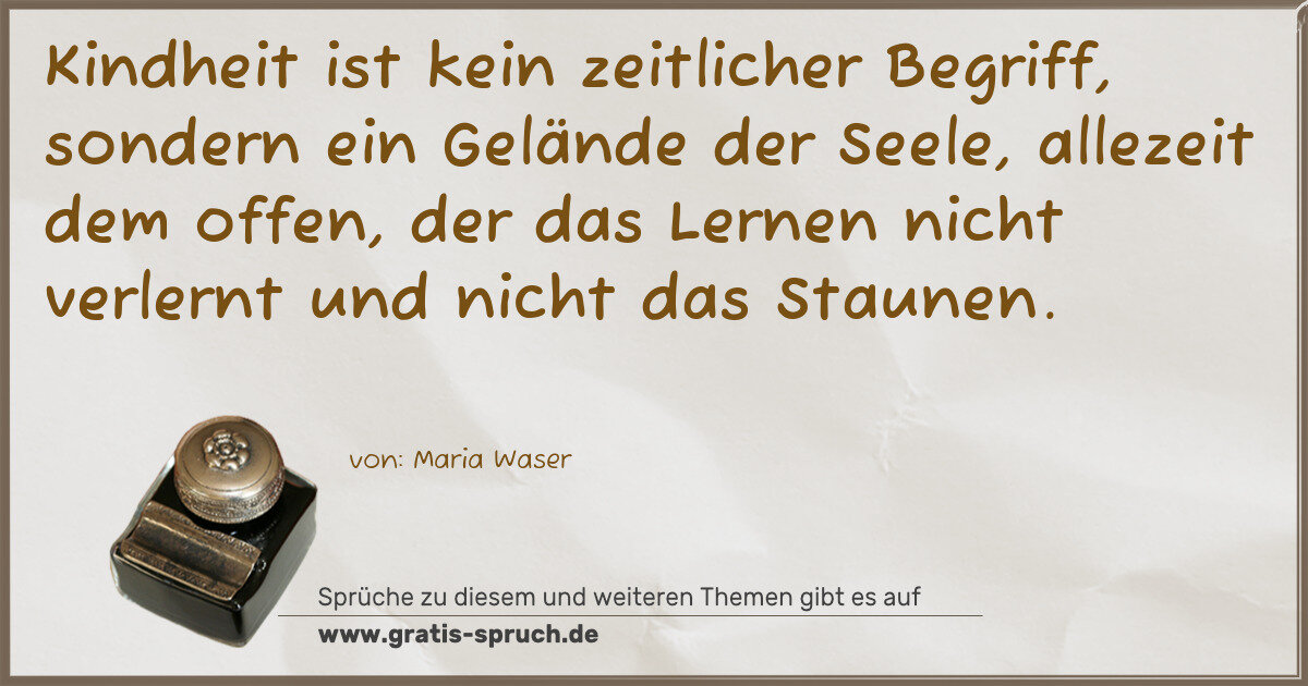 Kindheit ist kein zeitlicher Begriff, sondern ein Gelände der Seele, allezeit dem offen, der das Lernen nicht verlernt und nicht das Staunen.