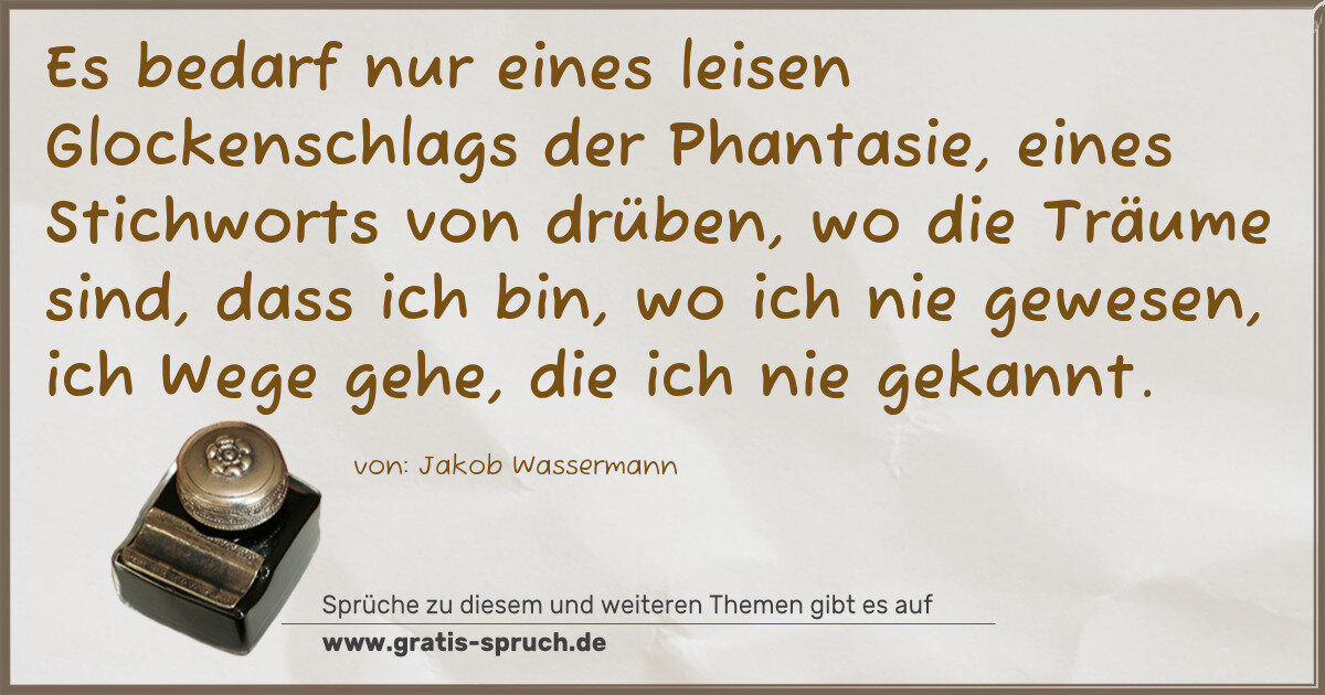 Es bedarf nur eines leisen Glockenschlags der Phantasie, eines Stichworts von drüben, wo die Träume sind, dass ich bin, wo ich nie gewesen, ich Wege gehe, die ich nie gekannt.