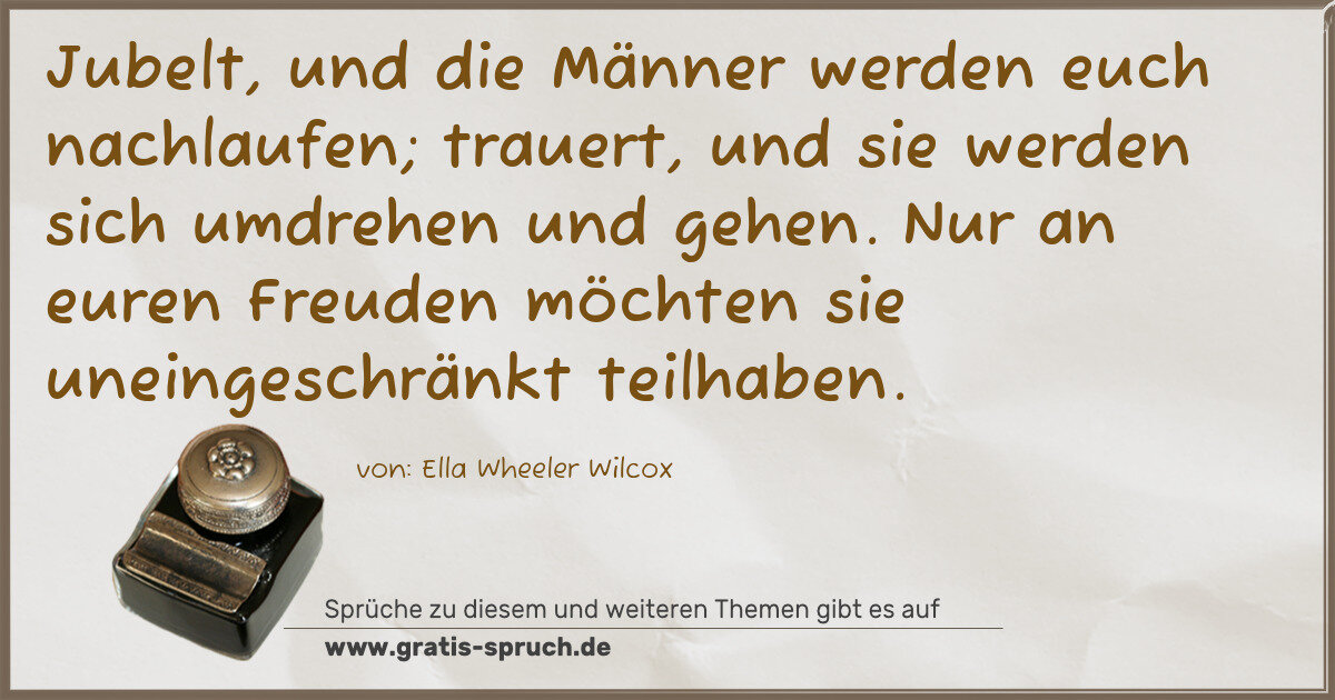 Jubelt, und die Männer werden euch nachlaufen; trauert, und sie werden sich umdrehen und gehen. Nur an euren Freuden möchten sie uneingeschränkt teilhaben.