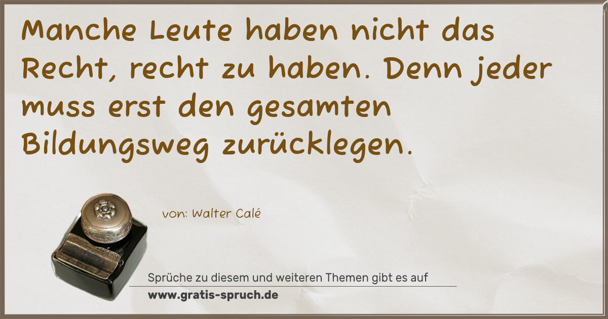 Manche Leute haben nicht das Recht, recht zu haben. Denn jeder muss erst den gesamten Bildungsweg zurücklegen.