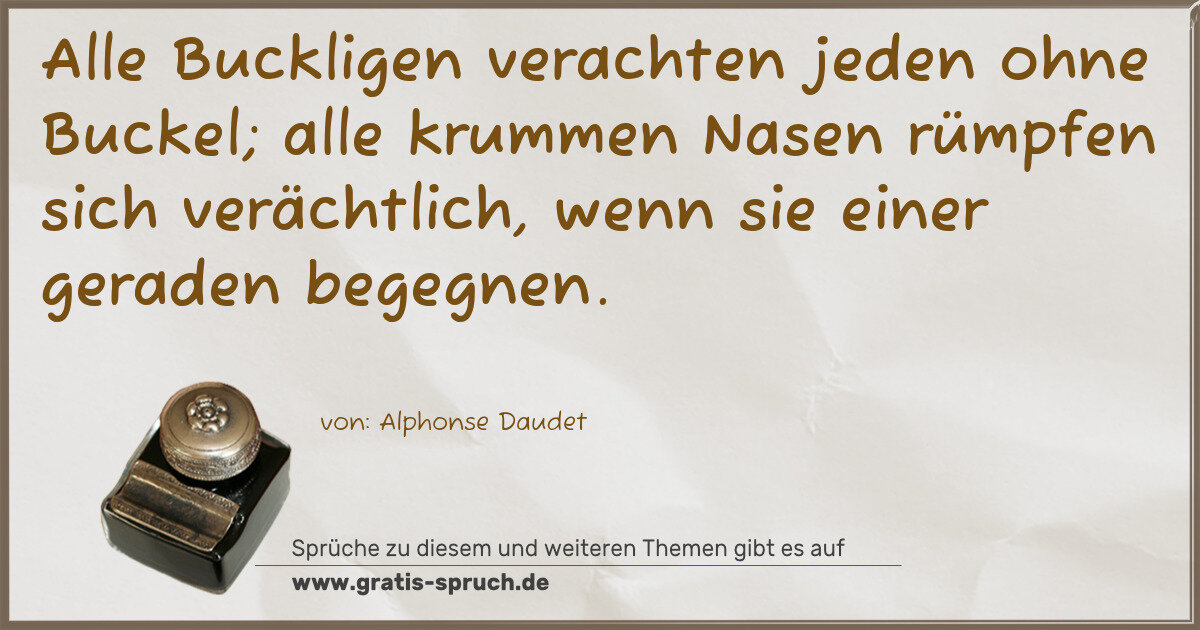 Alle Buckligen verachten jeden ohne Buckel; alle krummen Nasen rümpfen sich verächtlich, wenn sie einer geraden begegnen.