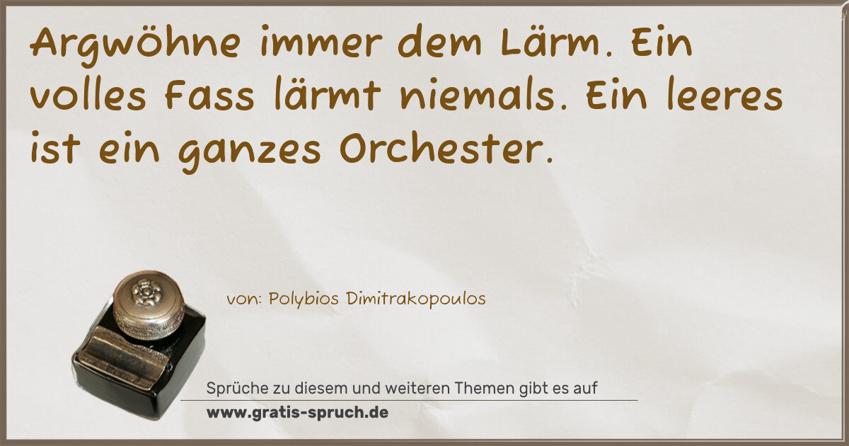 Argwöhne immer dem Lärm. Ein volles Fass lärmt niemals. Ein leeres ist ein ganzes Orchester.