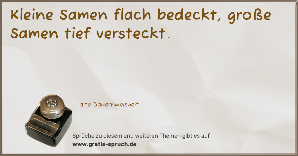 Kleine Samen flach bedeckt, große Samen tief versteckt.