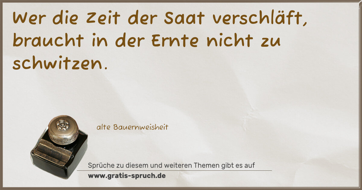 Wer die Zeit der Saat verschläft, braucht in der Ernte nicht zu schwitzen.