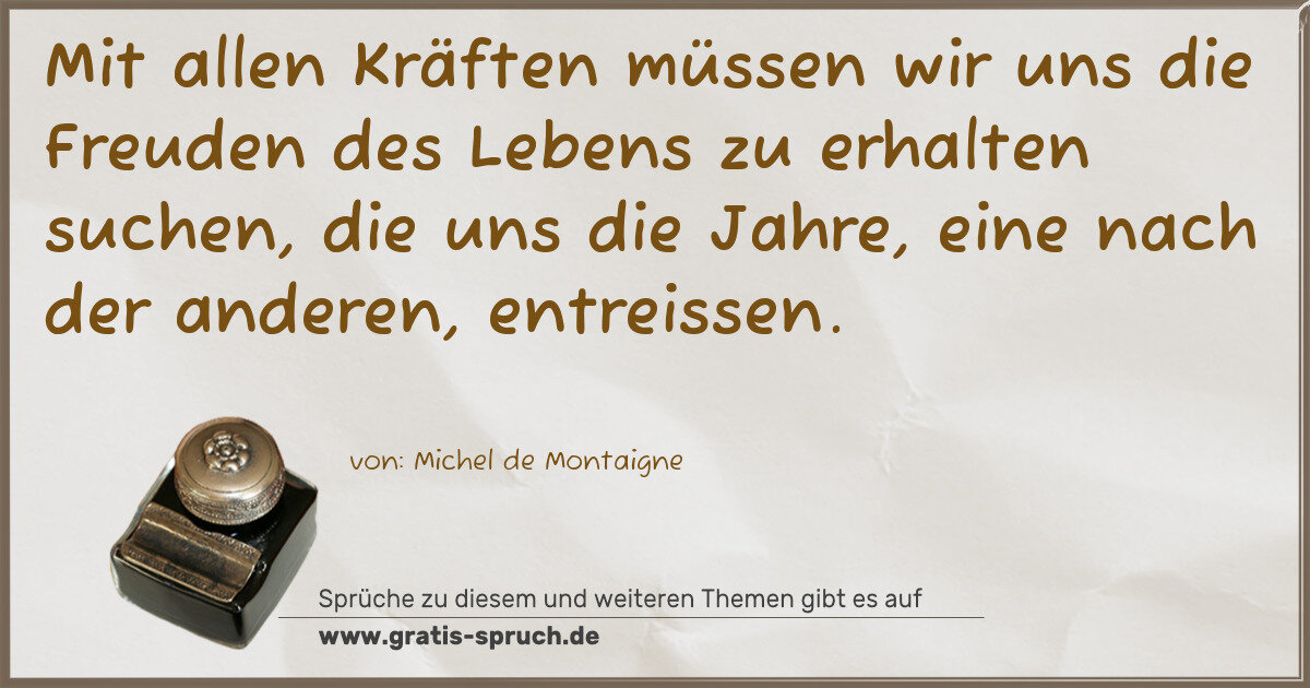Mit allen Kräften müssen wir uns die Freuden des Lebens zu erhalten suchen, die uns die Jahre, eine nach der anderen, entreissen.