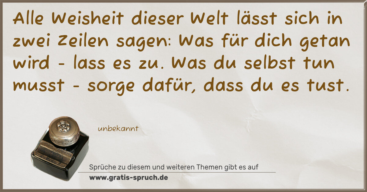 Alle Weisheit dieser Welt lässt sich in zwei Zeilen sagen: Was für dich getan wird - lass es zu. Was du selbst tun musst - sorge dafür, dass du es tust.