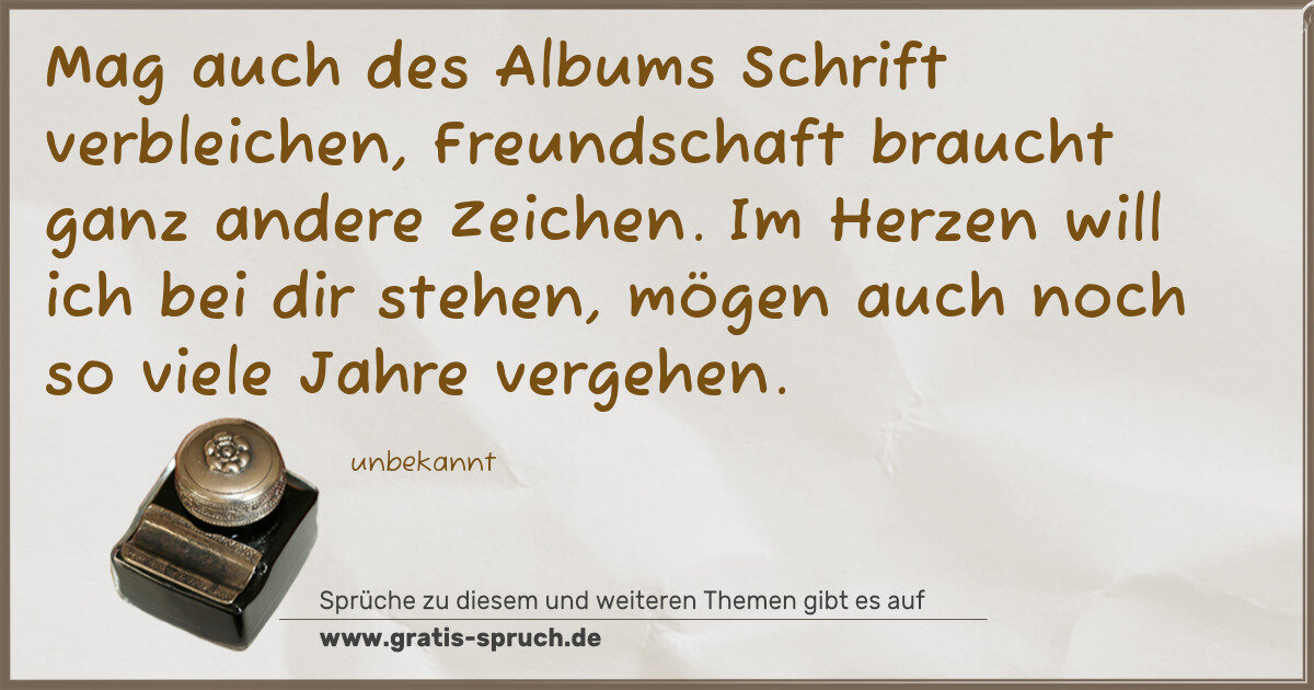 Mag auch des Albums Schrift verbleichen, Freundschaft braucht ganz andere Zeichen. Im Herzen will ich bei dir stehen, mögen auch noch so viele Jahre vergehen.