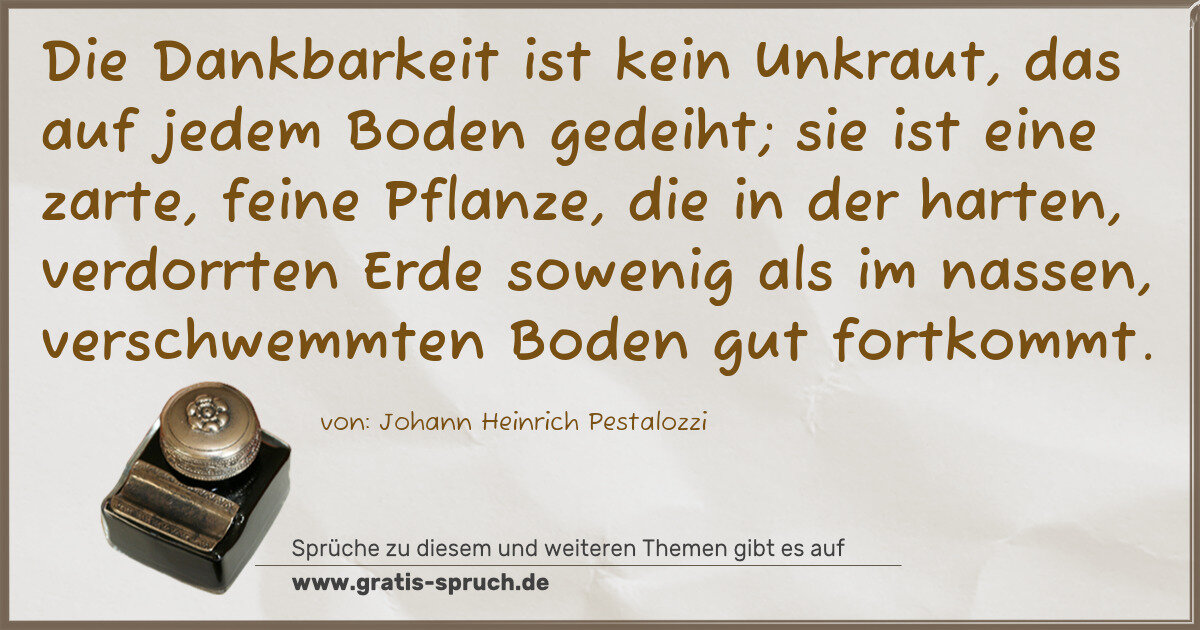 Die Dankbarkeit ist kein Unkraut, das auf jedem Boden gedeiht; sie ist eine zarte, feine Pflanze, die in der harten, verdorrten Erde sowenig als im nassen, verschwemmten Boden gut fortkommt.