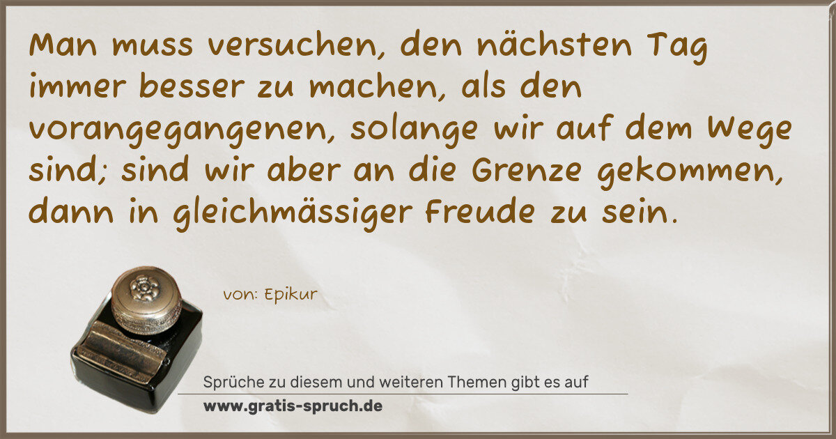 Man muss versuchen, den nächsten Tag immer besser zu machen, als den vorangegangenen, solange wir auf dem Wege sind; sind wir aber an die Grenze gekommen, dann in gleichmässiger Freude zu sein.