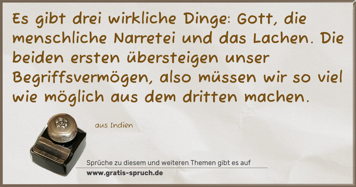 Es gibt drei wirkliche Dinge: Gott, die menschliche Narretei und das Lachen. Die beiden ersten übersteigen unser Begriffsvermögen, also müssen wir so viel wie möglich aus dem dritten machen.