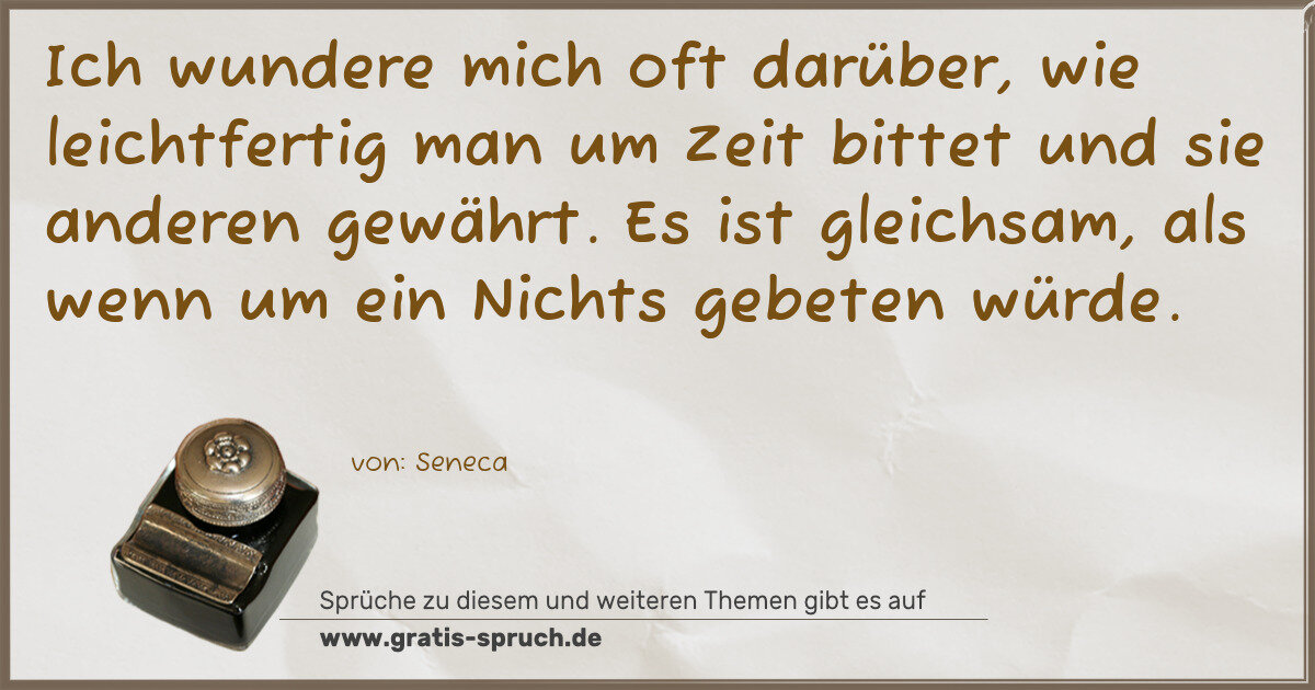 Ich wundere mich oft darüber, wie leichtfertig man um Zeit bittet und sie anderen gewährt. Es ist gleichsam, als wenn um ein Nichts gebeten würde.