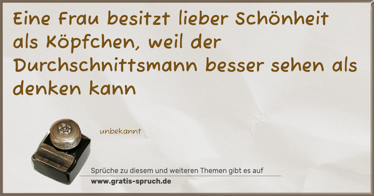 Eine Frau besitzt lieber Schönheit als Köpfchen, weil der Durchschnittsmann besser sehen als denken kann