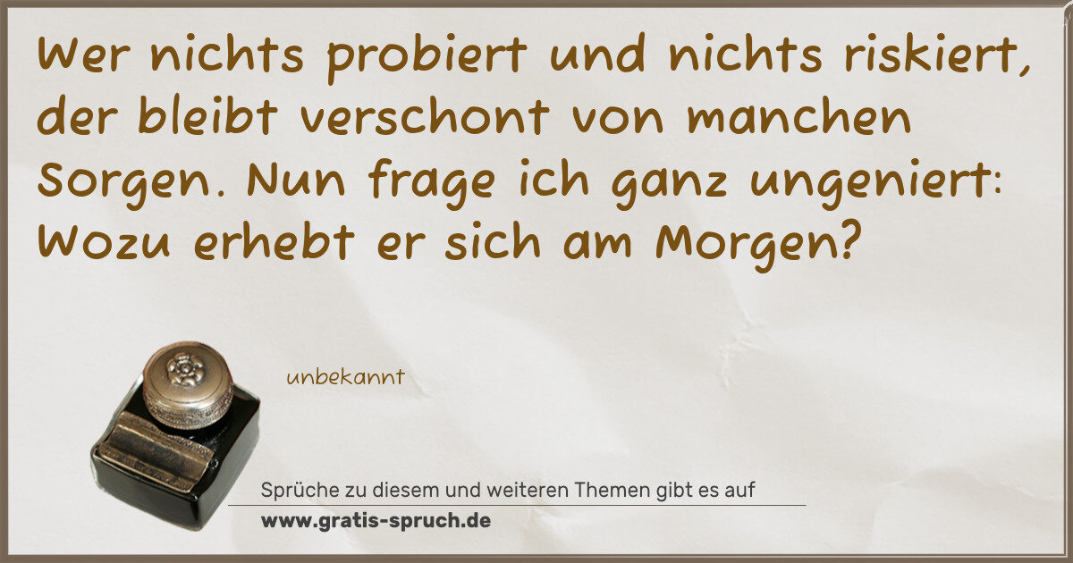 Wer nichts probiert und nichts riskiert, der bleibt verschont von manchen Sorgen. Nun frage ich ganz ungeniert: Wozu erhebt er sich am Morgen?