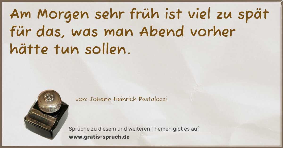 Am Morgen sehr früh ist viel zu spät für das, was man Abend vorher hätte tun sollen.