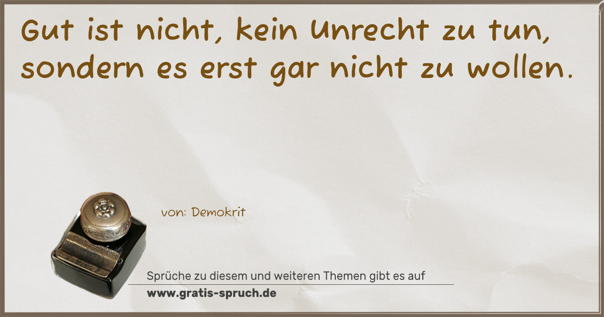 Gut ist nicht, kein Unrecht zu tun, sondern es erst gar nicht zu wollen.