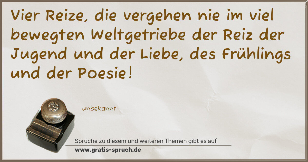 Vier Reize, die vergehen nie im viel bewegten Weltgetriebe der Reiz der Jugend und der Liebe, des Frühlings und der Poesie!