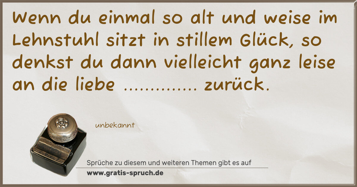 Wenn du einmal so alt und weise im Lehnstuhl sitzt in stillem Glück, so denkst du dann vielleicht ganz leise an die liebe .............. zurück.