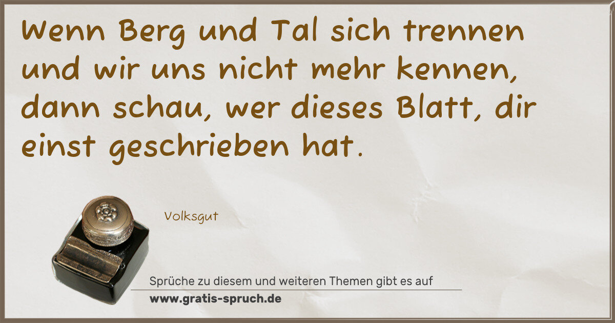 Wenn Berg und Tal sich trennen und wir uns nicht mehr kennen, dann schau, wer dieses Blatt, dir einst geschrieben hat.