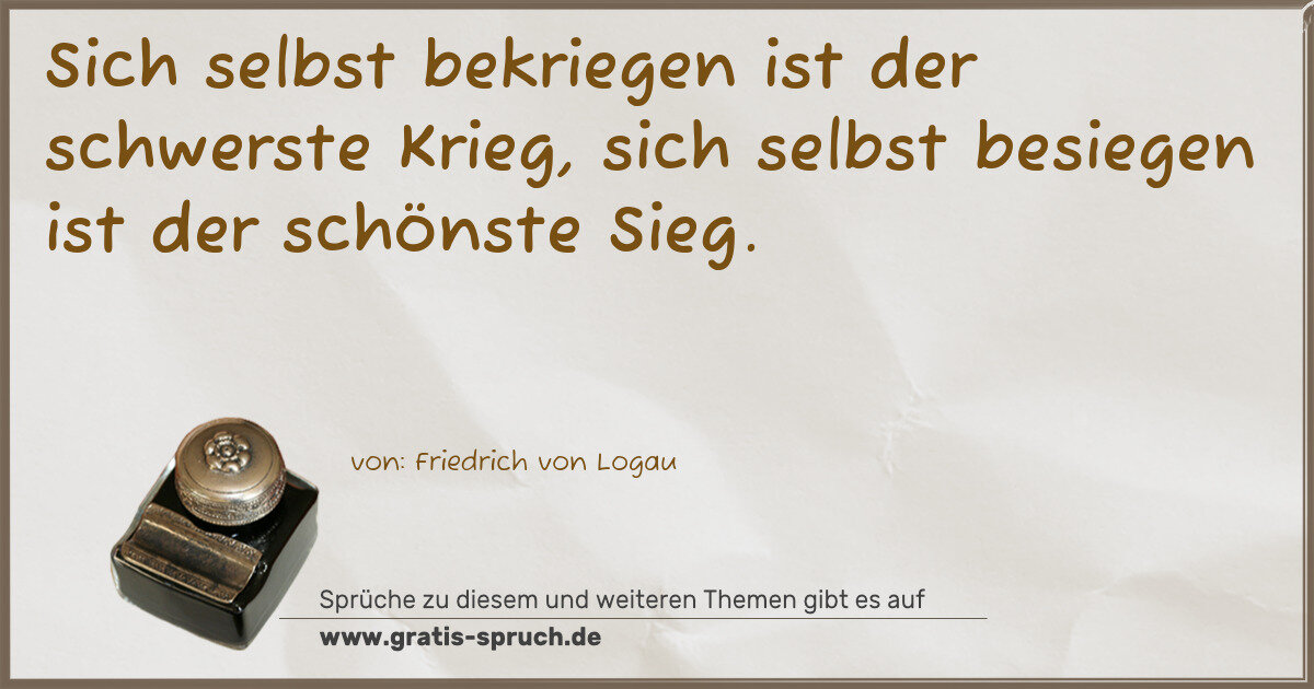 Sich selbst bekriegen ist der schwerste Krieg, sich selbst besiegen ist der schönste Sieg.