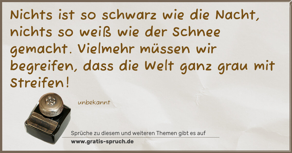 Nichts ist so schwarz wie die Nacht, nichts so weiß wie der Schnee gemacht. Vielmehr müssen wir begreifen, dass die Welt ganz grau mit Streifen!