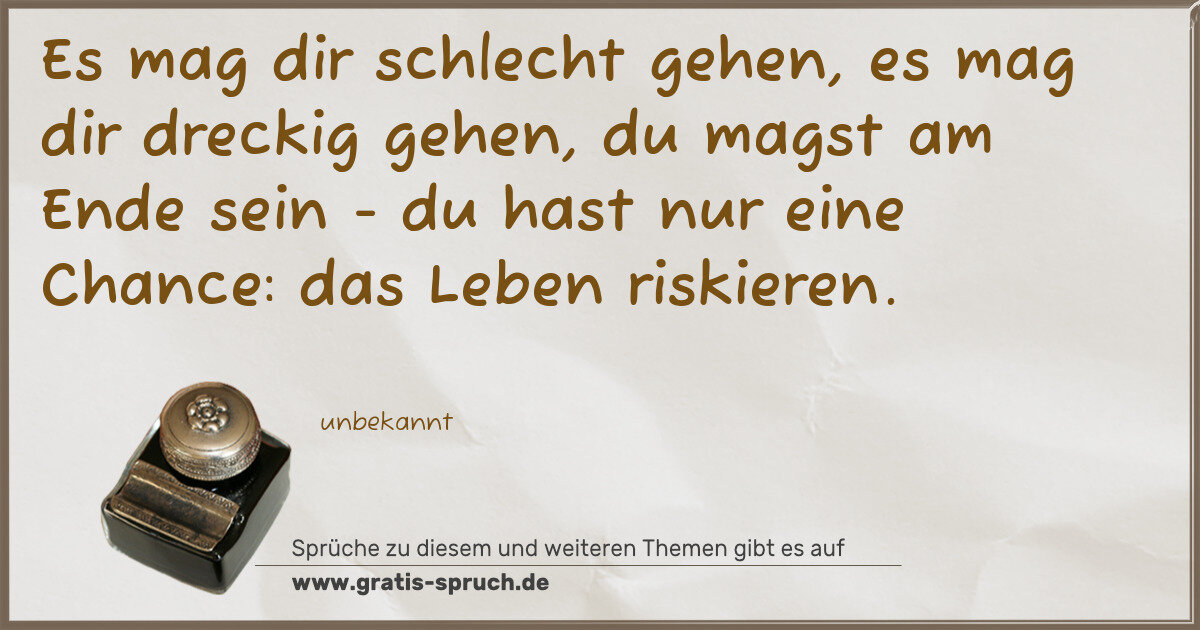 Es mag dir schlecht gehen, es mag dir dreckig gehen, du magst am Ende sein - du hast nur eine Chance: das Leben riskieren.