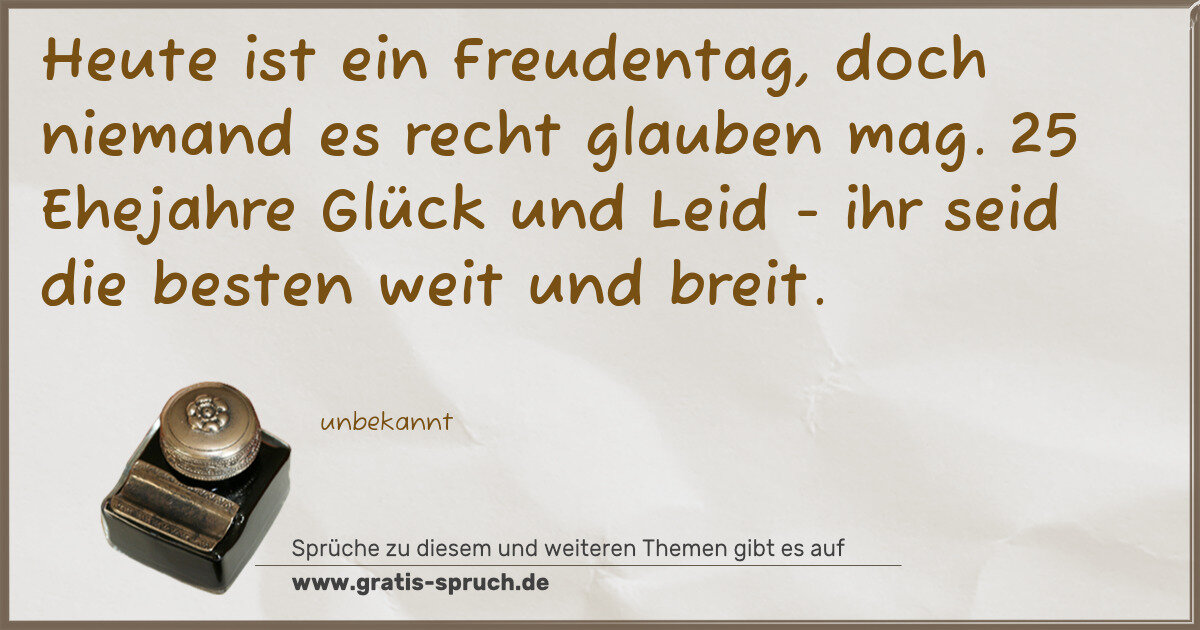 Heute ist ein Freudentag, doch niemand es recht glauben mag. 25 Ehejahre Glück und Leid - ihr seid die besten weit und breit.