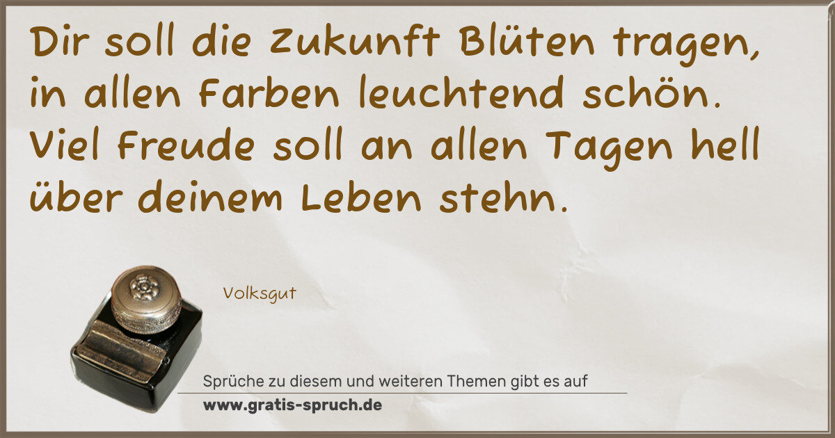Dir soll die Zukunft Blüten tragen, in allen Farben leuchtend schön. Viel Freude soll an allen Tagen hell über deinem Leben stehn.