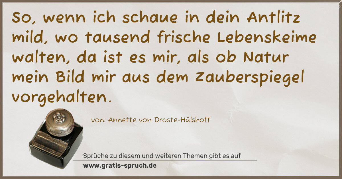 So, wenn ich schaue in dein Antlitz mild, wo tausend frische Lebenskeime walten, da ist es mir, als ob Natur mein Bild mir aus dem Zauberspiegel vorgehalten.